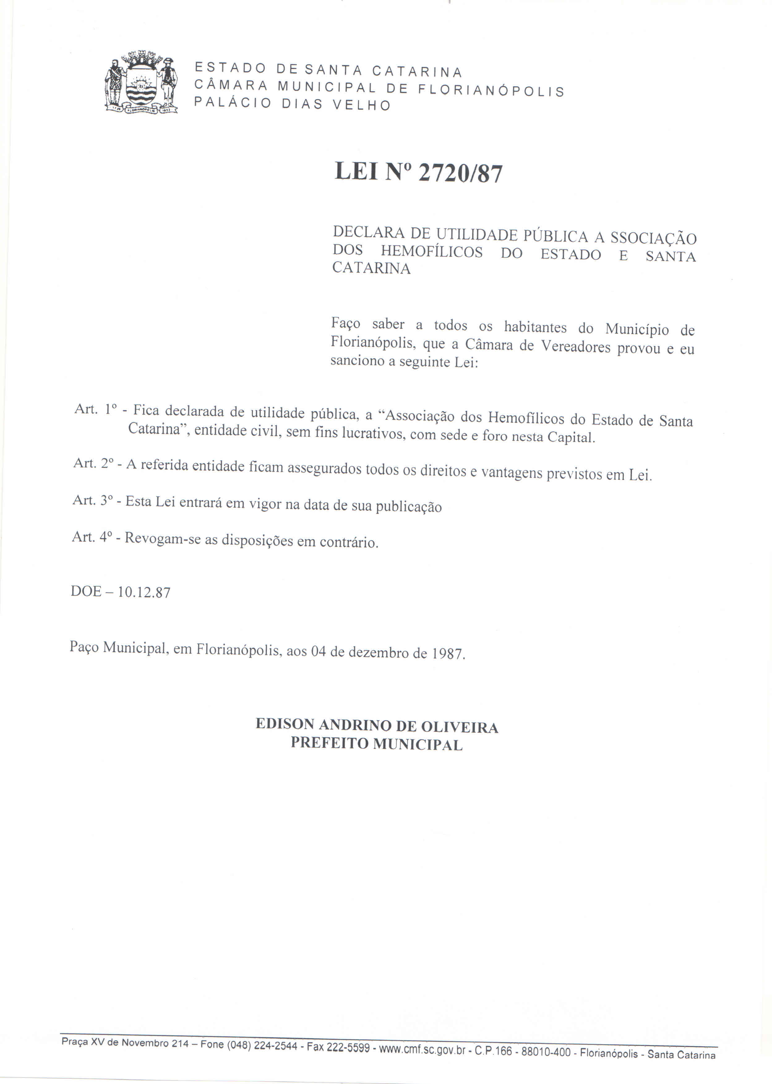 Lei Municipal 2720 de 1987.
